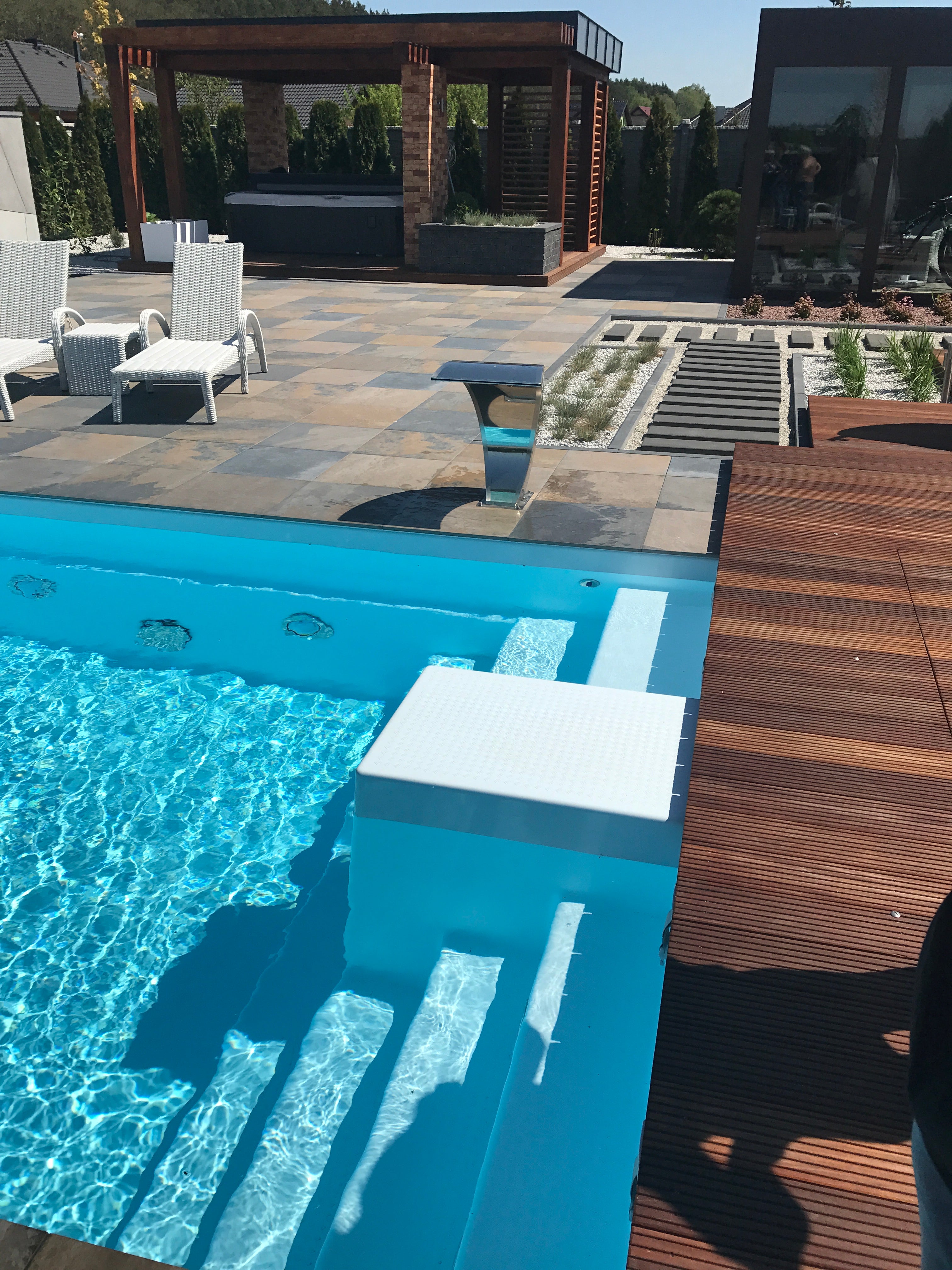 Esittelyssä Trinidad lasikuituallas, joka on tunnettu käytännöllisyydestään ja käyttäjäystävällisistä ominaisuuksistaan. Tämä suosittu uima-allas sisältää suoraviivaiset portaat ja valmiiksi sisäänrakennetun kotelon lamellipeitteelle sekä toisessa päässä vastavirtalaitteelle. Vastavirtalaitteen koteloa voi myös käyttää vaikka altaaseen hyppäämiseen tai vain istuskeluun veden ympäröimänä.